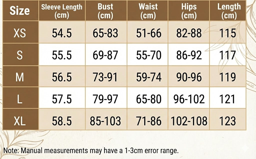 This dress is available in sizes S to XL, offering a great fit for different body types. For exact measurements and the best fit, please check our size chart.